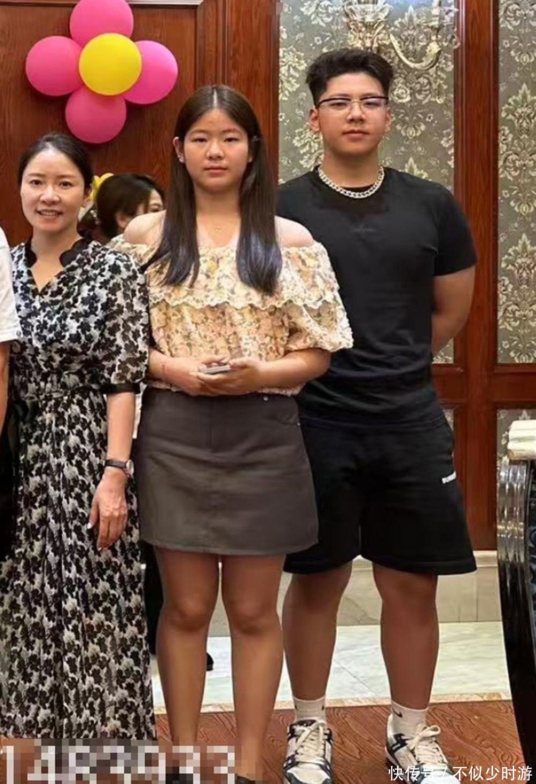 如今成长蜕变,身高远超母亲,戴着眼镜坚持健身,肌肉线条清晰,体型健壮有力,明显继承了母亲的体质特征,面容柔和,气质沉静。